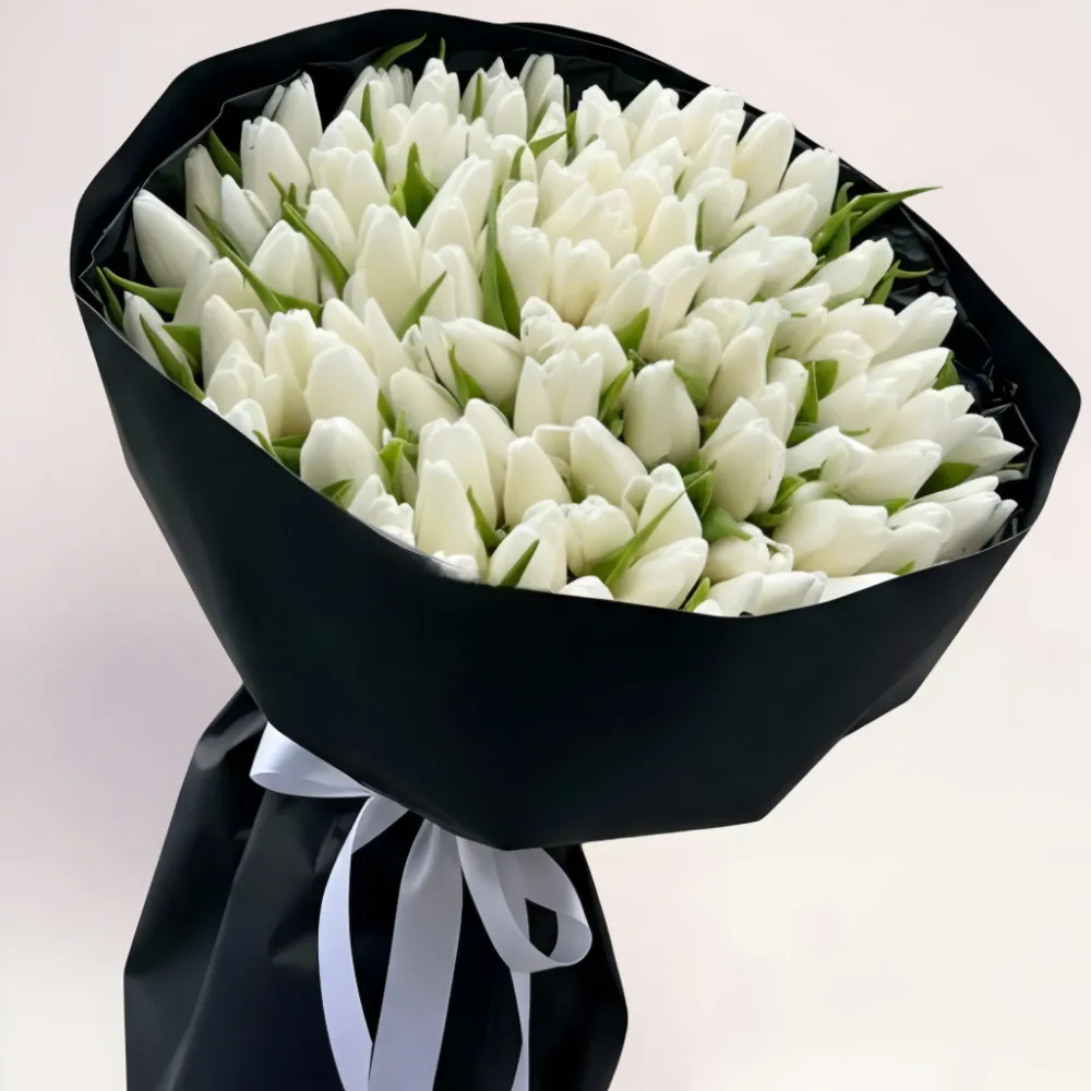 Заказывайте букет 101 белый тюльпан уже сейчас — и мы позаботимся, чтобы композиция выглядела безупречно, полностью соответствовала фото и была доставлена точно вовремя