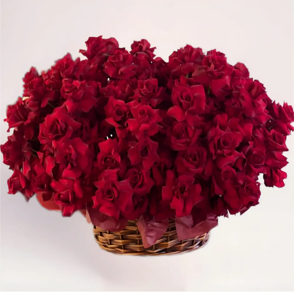 Корзина роз — универсальный символ величия и романтики. Она подходит как для личных, так и для торжественных событий, создавая атмосферу тепла и благородного праздника.