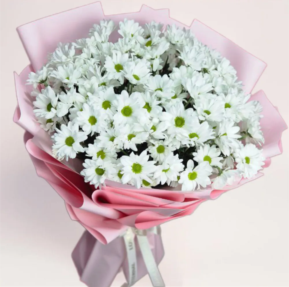 11 ромашковидных хризантем образуют светлый, живой букет с открытой серединкой и чистыми белыми лепестками, который выглядит естественно и непринужденно. Цветы напоминают ромашки, но имеют более плотный объем и аккуратную форму, благодаря чему композиция выглядит собранной и аккуратной. Одиннадцать соцветий создают ощущение щедрости без перегрузки и лишней помпезности. Такой букет подходит для теплых поздравлений, искренних жестов и знаков внимания без формальности. Вы можете купить 11 ромашковидных хризантем с бесплатной доставкой, которая работает 24/7.