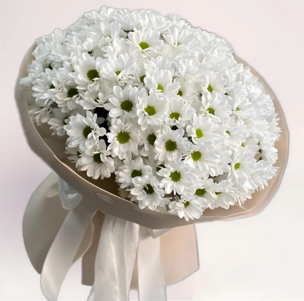 15 ромашковидных хризантем — изысканная композиция с идеальной формой и чистым белым оттенком, которая привлекает внимание своей аккуратностью. Крупные соцветия с открытой зеленой серединкой выглядят свежо, дорого и очень аккуратно, создавая ощущение продуманности каждой детали. Такой букет передает легкость, свет и безупречный вкус без лишней демонстративности. Он уместен для значимых моментов, особых событий и подарков, где важна эстетика и сдержанная элегантность. Наш интернет-магазин предлагает купить букет с бесплатной доставкой по Алматы, которая работает 24/7.