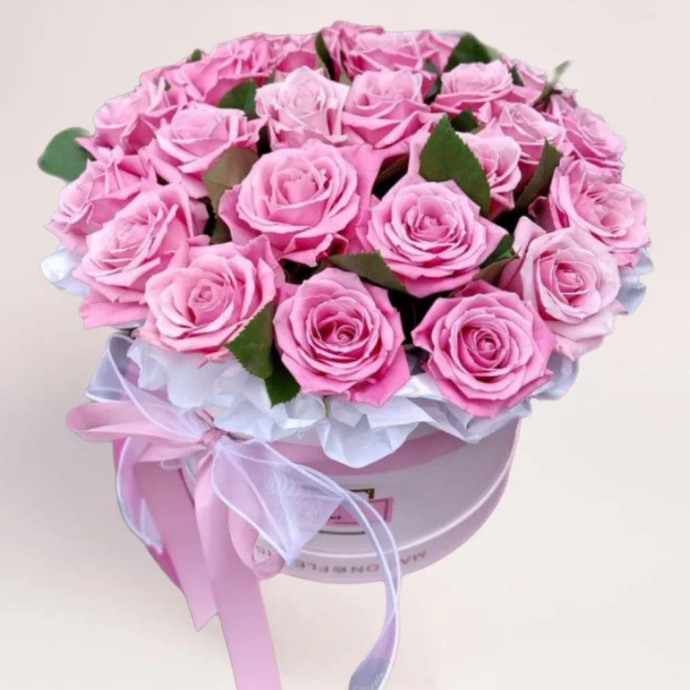 25 розовых роз в коробке — нежный и деликатный подарок, который выглядит аккуратно и уместно в любой ситуации. Светло-розовые бутоны создают спокойное, теплое настроение, а коробка делает композицию удобной для вручения. Такой букет часто выбирают, когда хочется порадовать без лишней торжественности. Вы можете купить 25 розовых роз в коробке, если ищете красивый подарок на день рождения мамы, дочери, супруги.  Такую композицию можно преподнести на День Учителя, 8 марта, коллеге, начальнице, деловому партнеру. Букет не требует дополнительного оформления. За счет коробки из плотного картона легко переносит транспортировку.