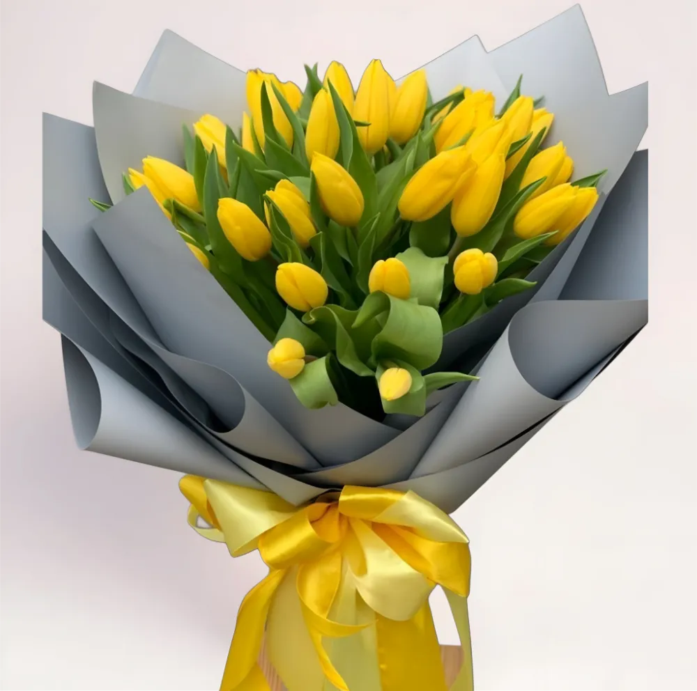 51 желтый тюльпан — это яркий солнечный акцент, который мгновенно наполняет пространство теплом, оптимизмом и весенней энергией. Сочные желтые бутоны в стильной серой упаковке выглядят современно и эффектно, подчеркивая радостный характер композиции. Такой букет идеально подойдет для поздравлений, важных событий или как знак поддержки и заботы. У нас вы можете купить букет 51 желтый тюльпан с бесплатной доставкой по городу 24/7. В дополнение вы можете добавить приятный подарок к заказу – открытку, воздушные шары, коробку конфет или мягкую игрушку.
