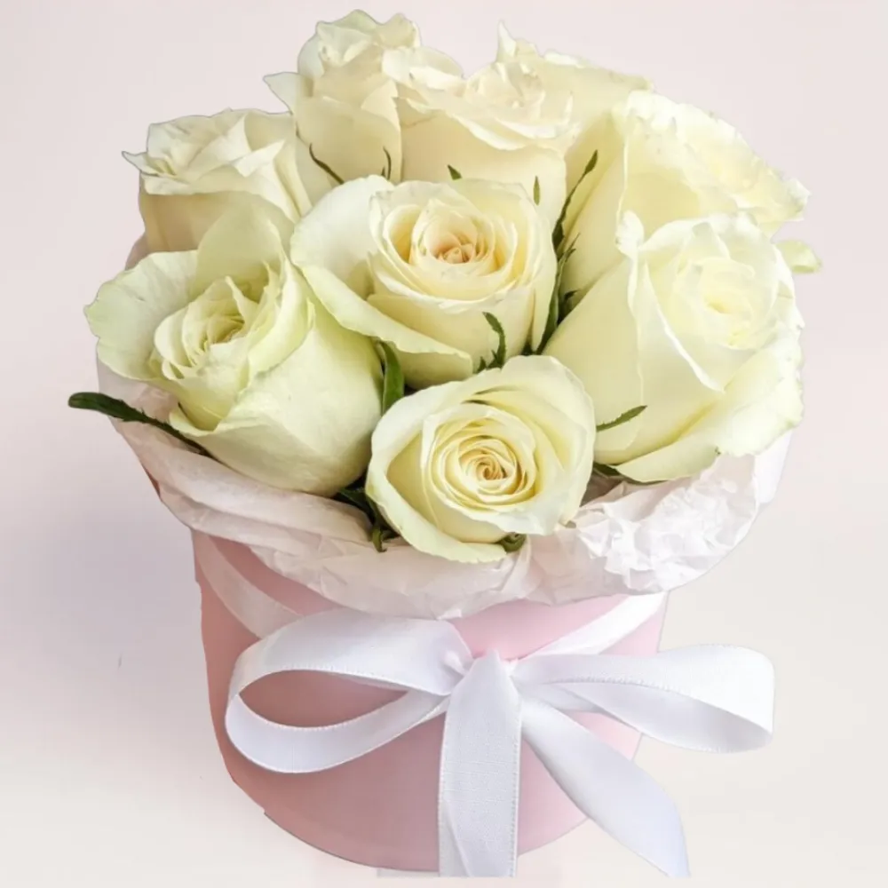 9 белых роз в коробке — удачное сочетание классической цветочной символики и современной подачи. Белый цвет роз ассоциируется с чистотой намерений, искренностью и уважением, поэтому такая композиция подходит для различных жизненных событий. Компактная форма и аккуратное размещение цветов делают подарок визуально сбалансированным и приятным для восприятия.