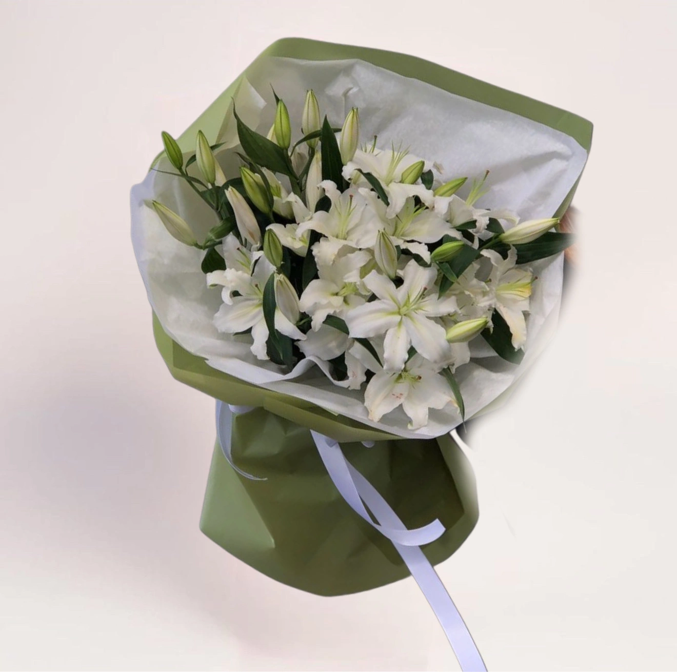 Этот букет выбирают в ситуациях, когда важно передать уважение, искренность или светлые эмоции без чрезмерной эмоциональности. Он подходит как для личных моментов, так и для официальных событий, где ценится тактичность и стиль. Белые лилии не навязывают эмоции — они деликатно подчеркивают значимость момента. Такая композиция выглядит уместно независимо от возраста или статуса получателя.