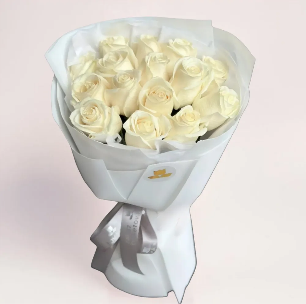 Букет из 15 белых роз — сдержанный премиум-подарок, в котором сочетаются элегантность и глубокий смысл. Белый цвет символизирует искренность, уважение и светлые намерения, а количество цветов подчеркивает серьезность жеста. Такой букет уместен и для извинения, и для знака благодарности, и как изящный подарок без повода. Если вы хотите купить 15 белых роз, чтобы сказать важное без лишних слов — этот вариант станет отличным выбором.