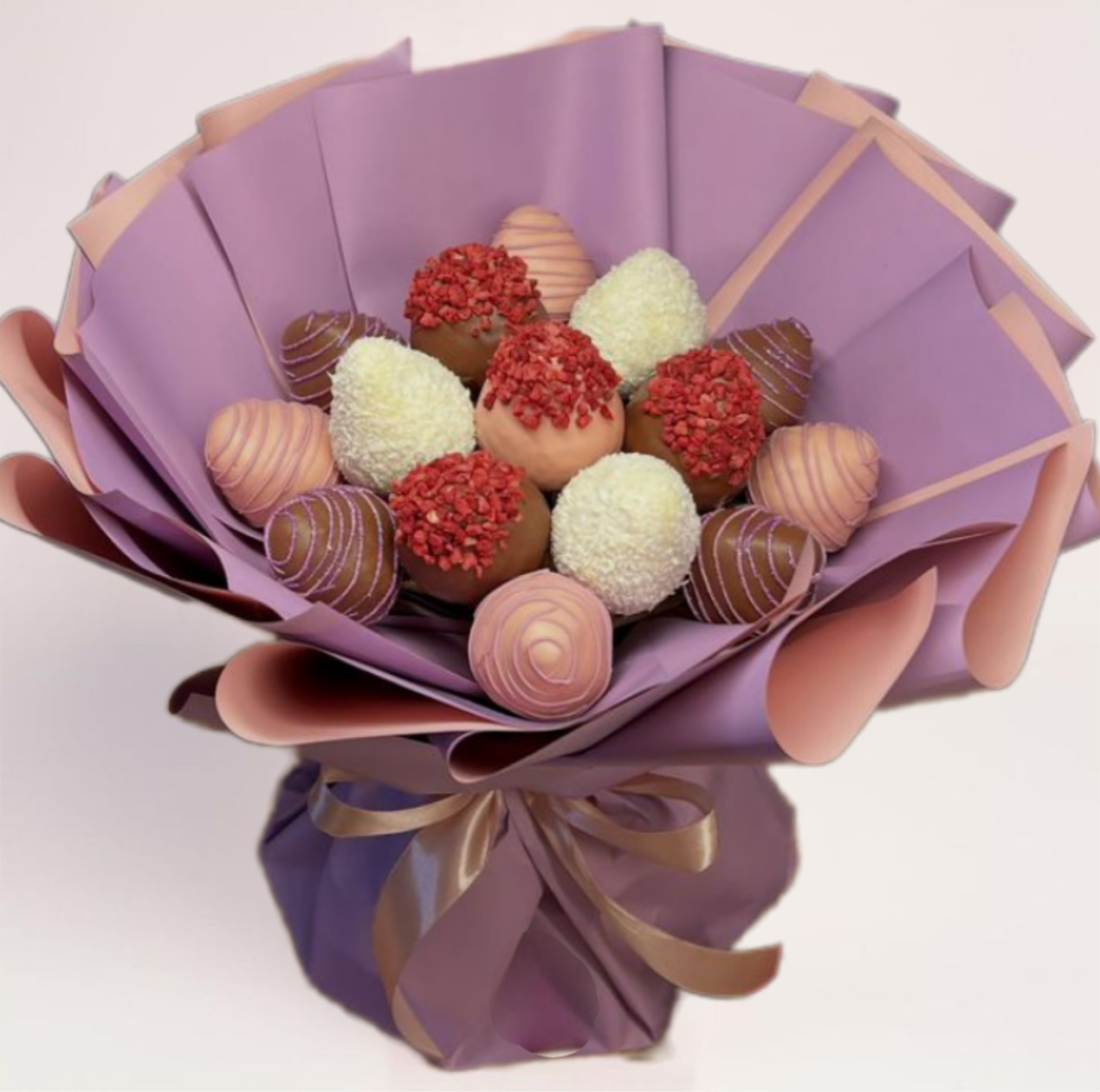 Букет из клубники в шоколаде M — ассорти ягод в шоколадной глазури с декором, собранное в стильный букет. Бесплатная и быстрая доставка, плюс бонус на следующие заказы.