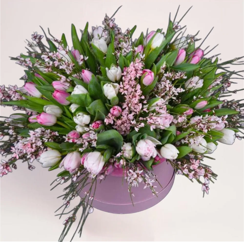 Мы работаем с композициями так, чтобы результат полностью соответствовал ожиданиям. Заказывая коробку с тюльпанами, вы получаете флористическую работу, где каждая деталь продумана — от фактуры до финального вида в момент получения.