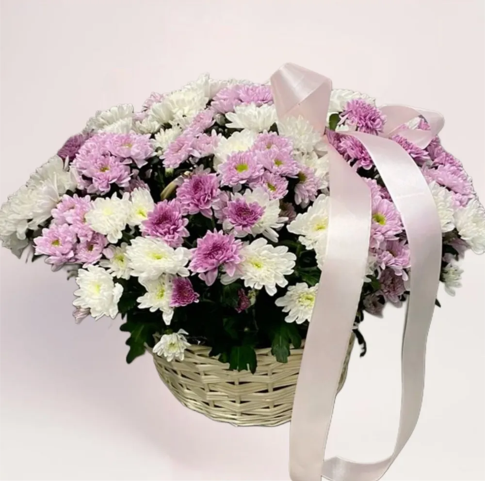 Корзина микс хризантем Алматы — это готовая цветочная композиция, которая не требует дополнительного ухода или оформления. Плетеная корзина подчеркивает солидный вид подарка, а мягкая пастельная палитра делает его универсальным и уместным для разных поводов. Такая композиция завершенная и гармоничная сама по себе. Ею можно украсить любое пространство.