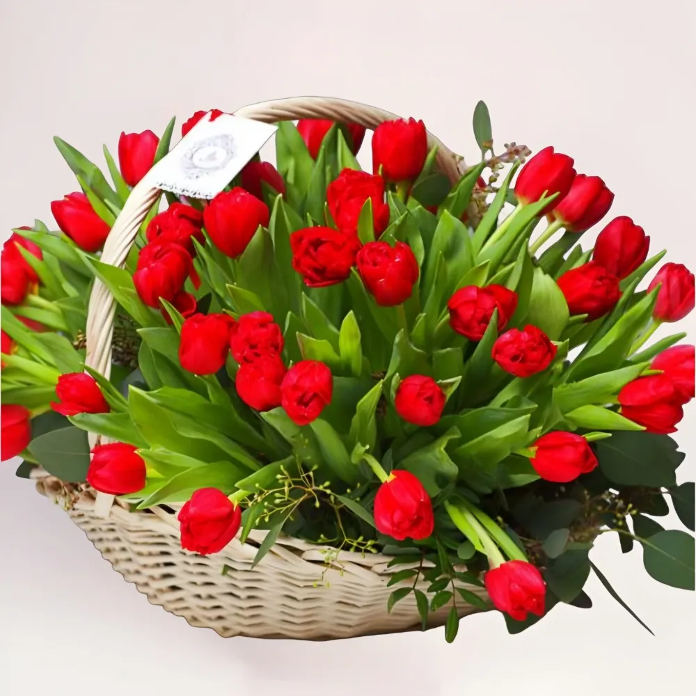Практичный и удобный формат корзины с тюльпанами