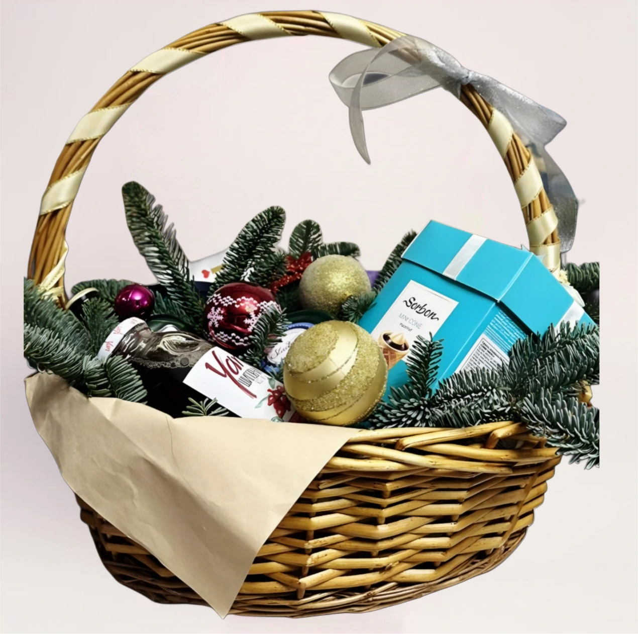 Новогодняя корзина Winter Calm Basket — спокойная и уютная подарочная композиция в натуральной плетеной корзине со сладостями и напитками. На фото корзина выглядит гармонично и аккуратно: плотные еловые ветки создают форму, золотые и бордовые шары добавляют праздничный блеск. Сладости и напитки размещены так, чтобы композиция выглядела завершенной с любого ракурса. Корзина не требует дополнительной упаковки и готова к вручению сразу после доставки. Вы можете купить Winter Calm Basket в Алматы с бесплатной доставкой. Принимаем заказы без выходных 24/7. Чтобы вы могли убедиться в качестве, перед отправкой высылаем фото готовой композиции вам на утверждение.