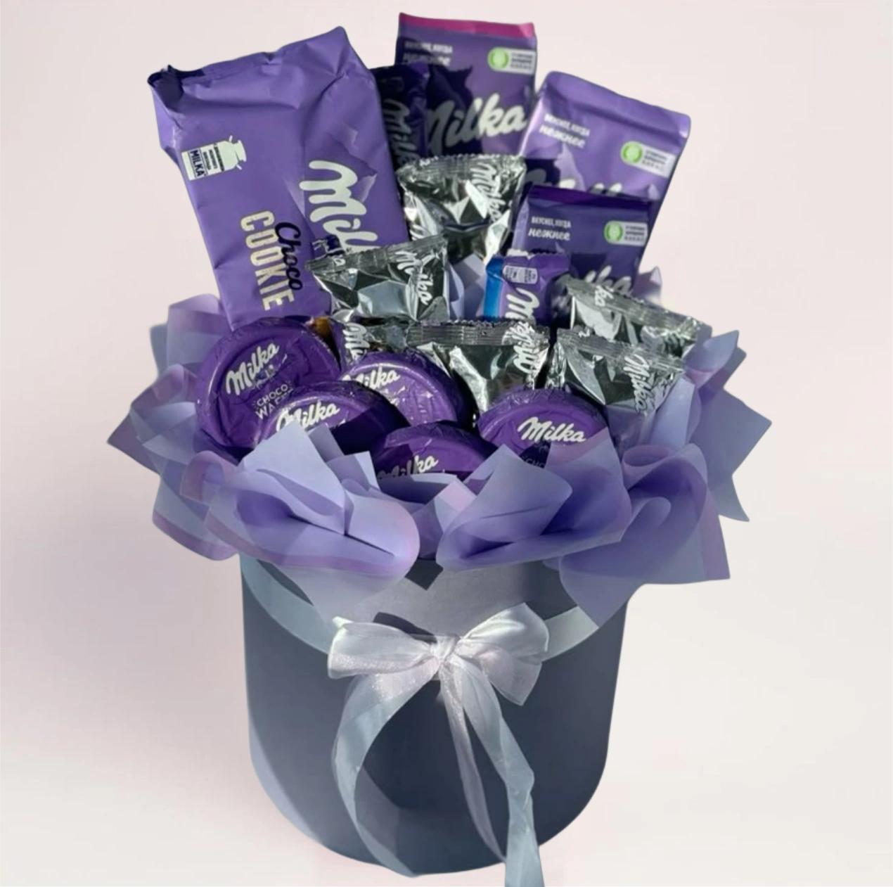 Бесплатная доставка по городу. Сладкий подарочный набор Milka — готовый подарок, который приятно дарить «просто так» или как дополнение к цветам.